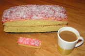 2. Into the faithful old Kenwood Chef we go with our first packet of cake mix , 2 eggs, a couple of spoons of vegetable fat (Flora, not Crisco with its unsavoury undertones) and a drop of water. Sloppy consistency, cooled to a nice crispy but cakey texture, so we thought we’d switch to recipe 2 for the top, reserving a bit of the sloppy stuff for icing the aforementioned decorations.
